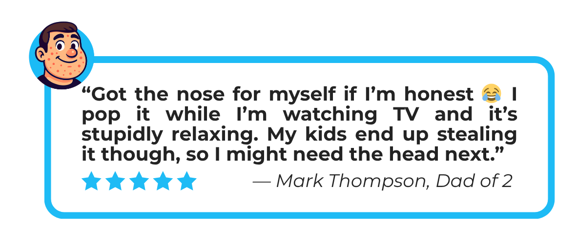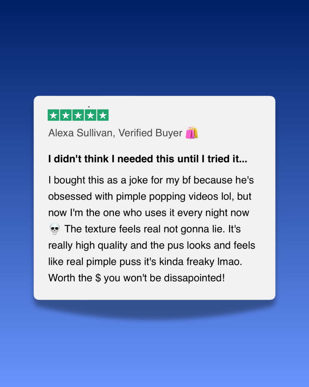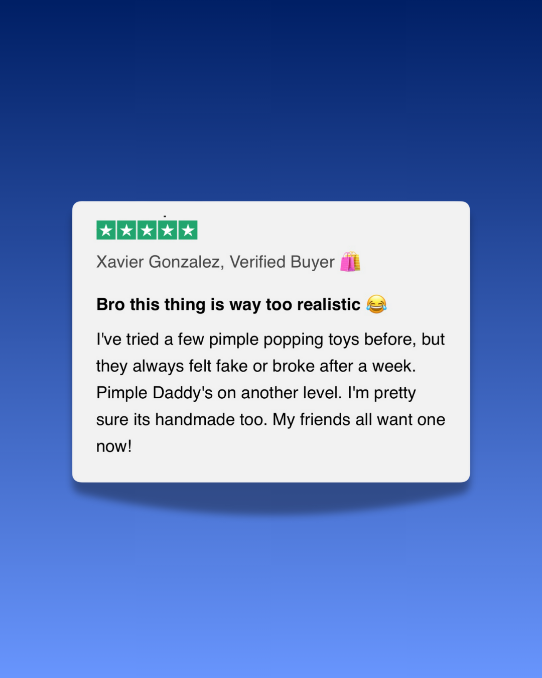 The #1 stress relief toy designed to help you unwind, laugh and relax. Each pimple is filled with a reusable, skin-safe gel that mimics the oddly satisfying feeling of popping a real pimple - without mess or pain. It's the ultimate DOPAMINE BOOSTER for stress relief and anxiety.